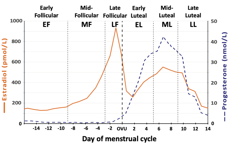 Debido a sus efectos complementarios y antagonistas, la concentración de estrógenos y progesterona debe variar a lo largo del ciclo menstrual en diferentes fases para un buen equilibrio hormonal y un adecuado funcionamiento del organismo, siendo dichas fases las siguientes: