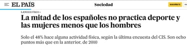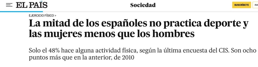 Actualmente en España (2024) tan solo el 48% de la población adulta realiza algún tipo de ejercicio físico, lo que significa, que mínimo el 52% es sedentario. Con mínimo me refiero a que realizar algún tipo de ejercicio físico no te exime de ser sedentario. Para ello, entender la diferencia entre ejercicio físico y actividad física es esencial.